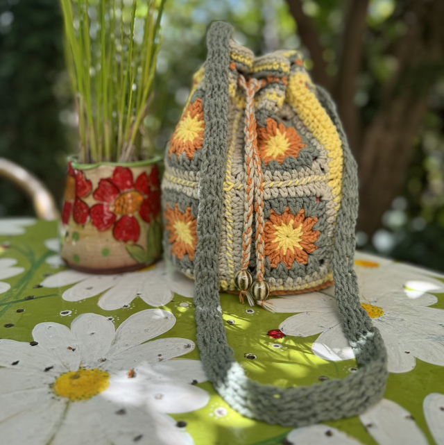 Sac bourse avec mono anse à porter bandoulière ou épaule.