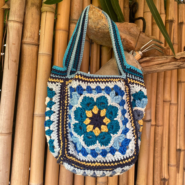 Mini sac à main entièrement crocheté a la main et 100% coton irisé